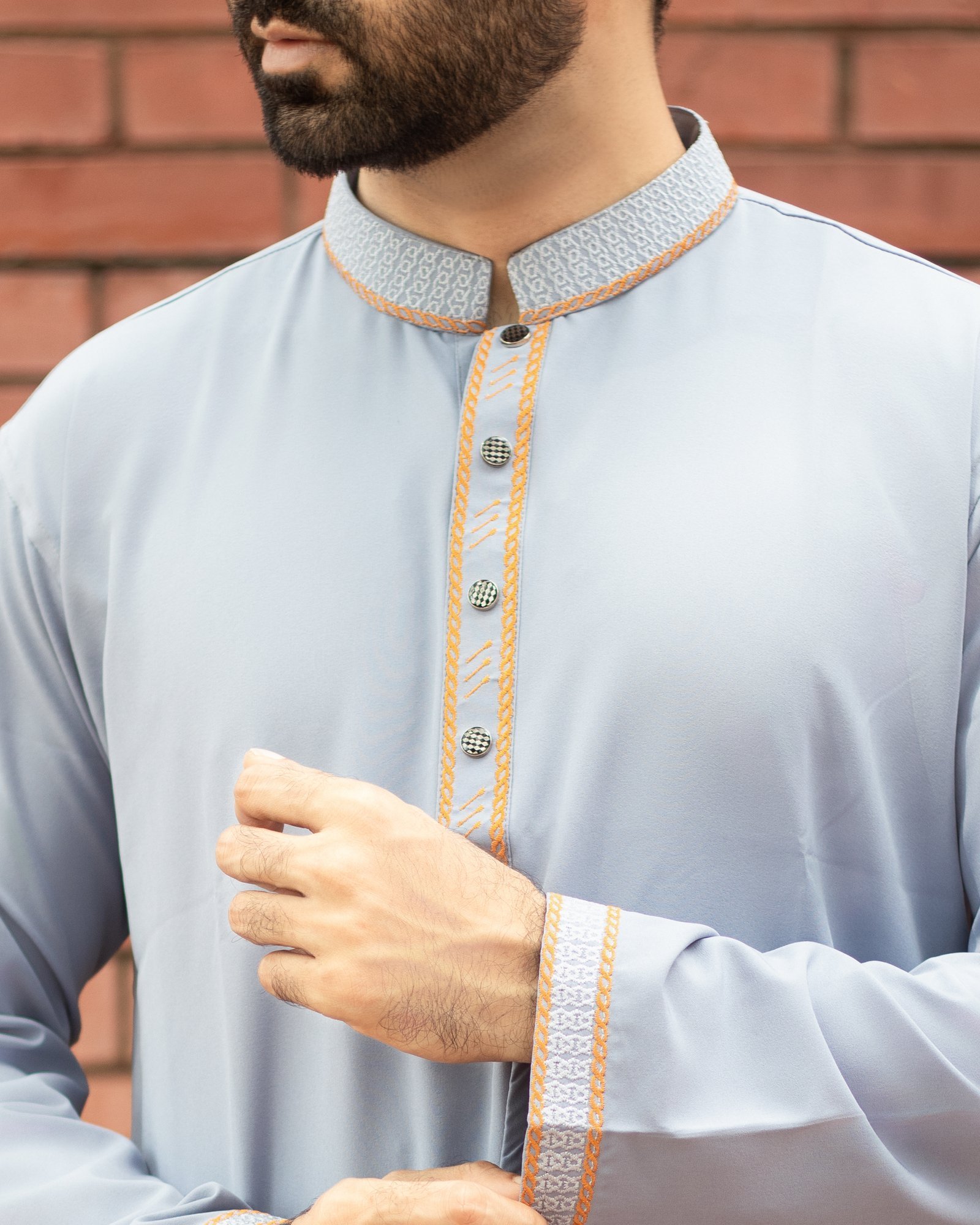 অ্যাশ কালার প্রিমিয়াম এমব্রয়ডারি পাঞ্জাবি