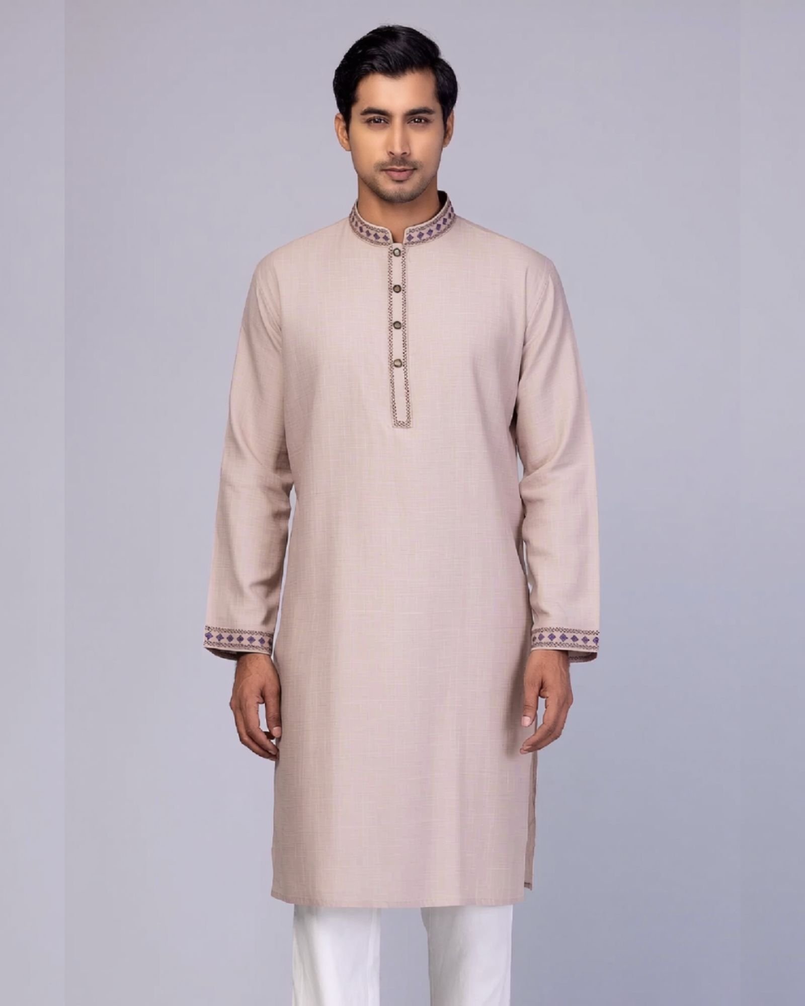 বিস্কুট কালার – প্রিমিয়াম কটন ফেব্রিকের এমব্রয়ডারি পাঞ্জাবি