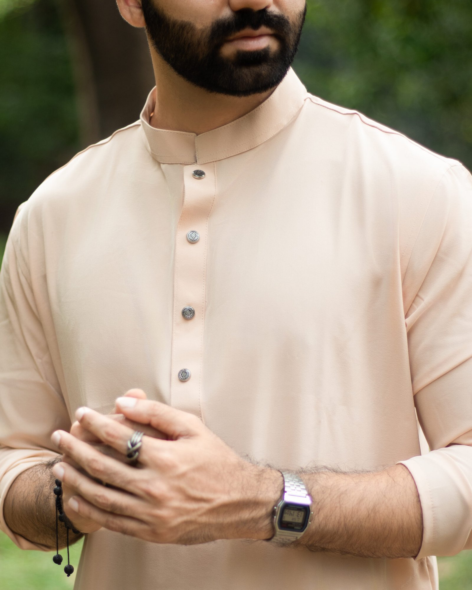 ক্রিম কালার প্রিমিয়াম মাইক্রোস্টিজ সলিড পাঞ্জাবি