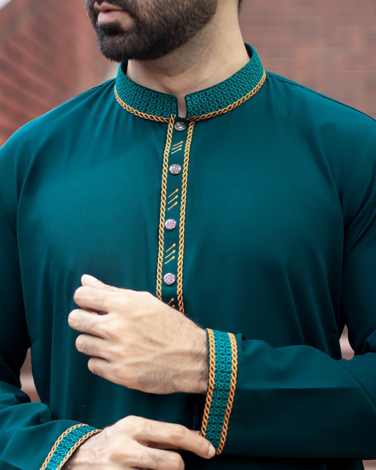 বোটল গ্রিন কালার প্রিমিয়াম এমব্রয়ডারি পাঞ্জাবি