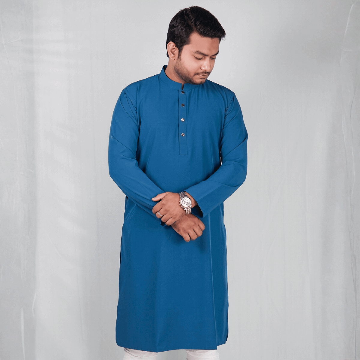 পেট্রোল ব্লু কালার অরিজিনাল প্রিমিয়াম চায়না ফেব্রিকের সলিড পাঞ্জাবি